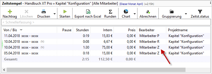 Damit sehen die Mitarbeiter die Projekte auf die sie die Zeiten buchen sollen, aber keine Zeiten und Mitarbeiternamen mehr: