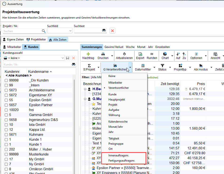 Auch eine Gruppierung nach einem Benutzerfeld ist möglich: