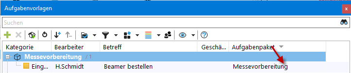 Gruppieren Sie nach Aufgabenpaket, um das Paket anzuzeigen: