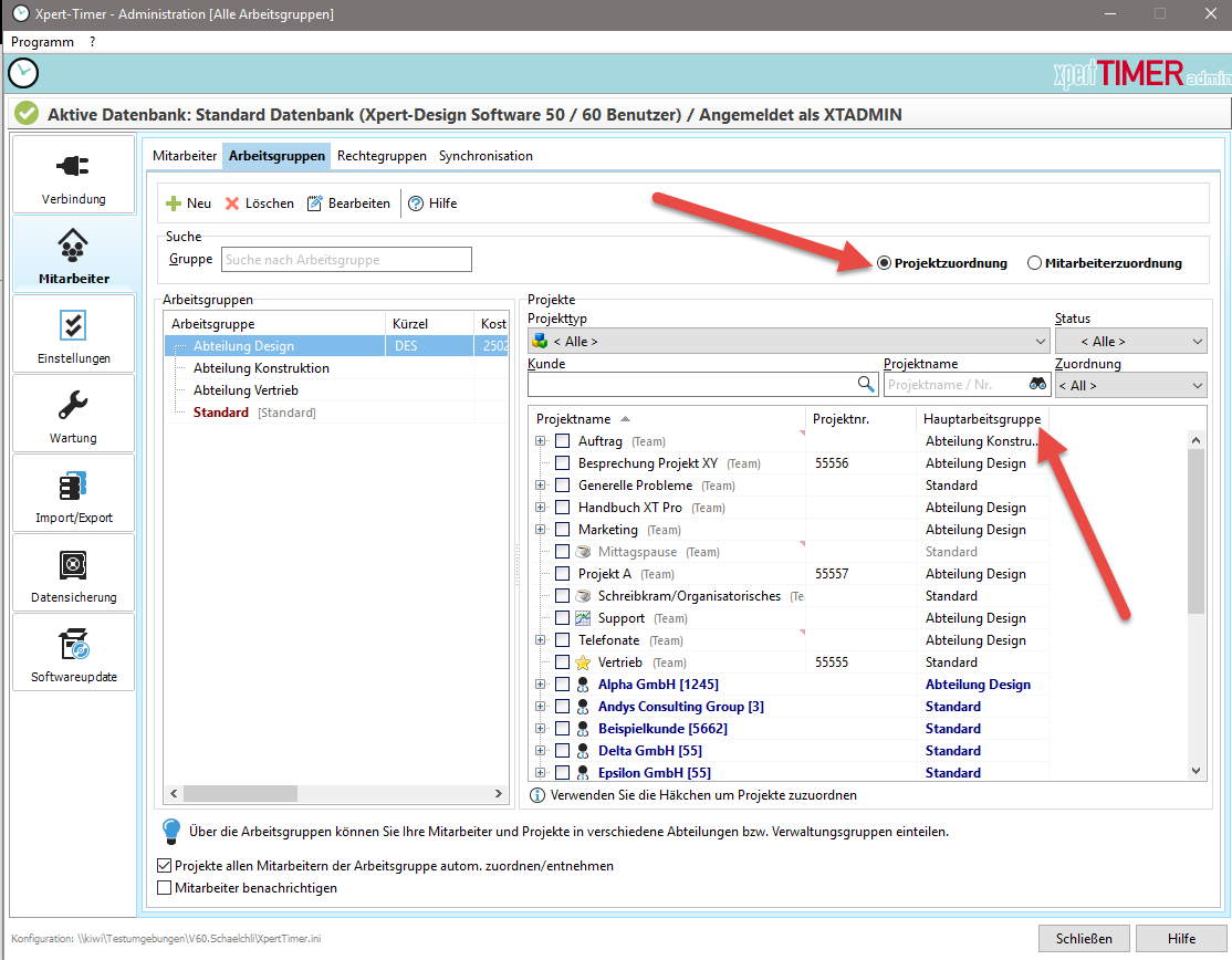 Der nächste Schritt ist die Zuordnung der Kunden/Projekte zu den Arbeitsgruppen: