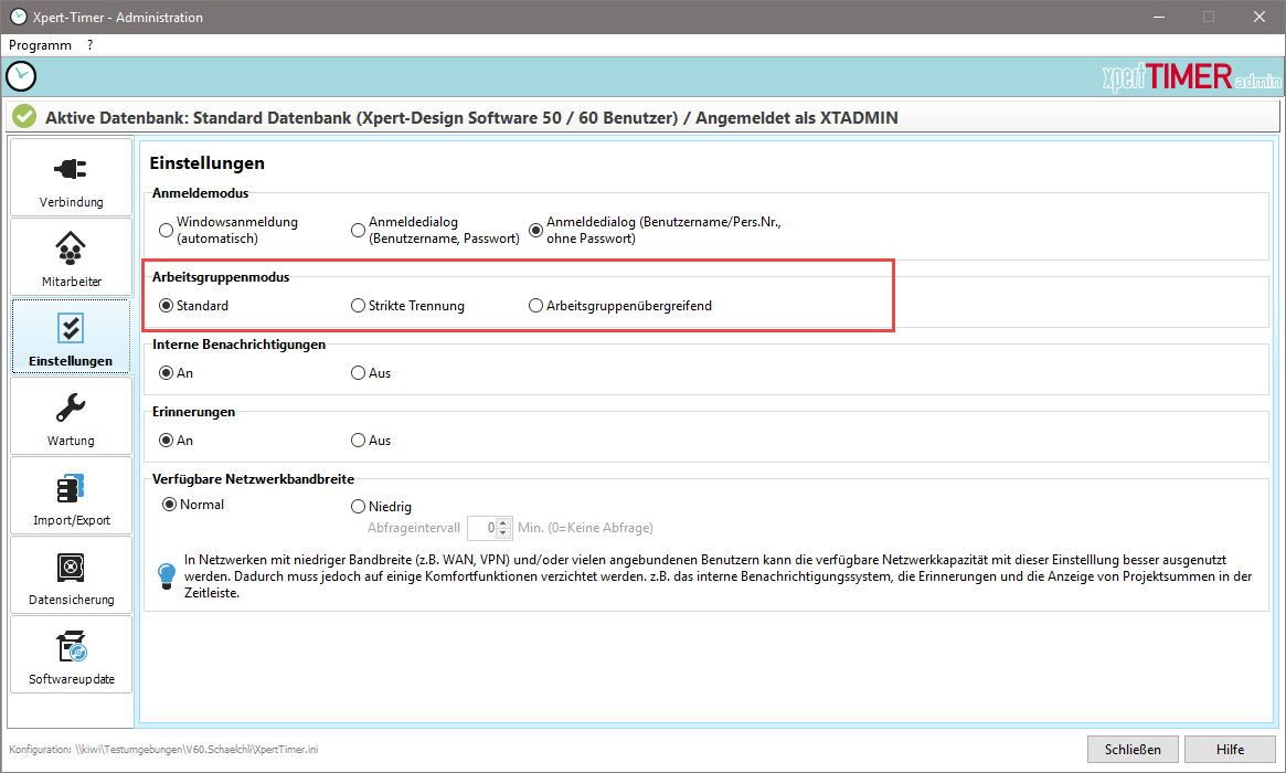 Besteht Ihre Firm aus mehreren Abteilungen, können Sie die Sichtbarkeiten im Xpert-Timer über Arbeitsgruppen eingrenzen.