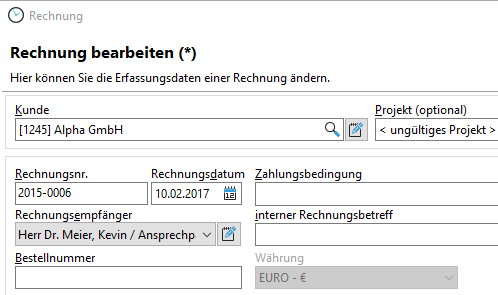 Wählen Sie zunächst in nachfolgender Tabelle, ob Sie eine Rechnung bearbeiten oder eine neue Rechnung erstellen möchten. Klicken Sie dazu auf den entsprechenden Link.