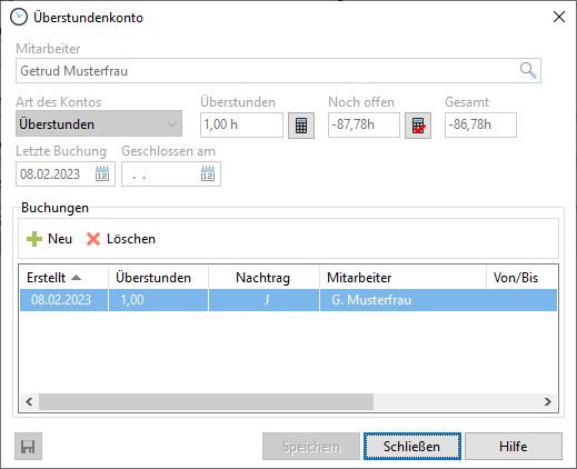 Das Überstundenkonto zeigt Ihnen die aktuell offenen Überstunden an. Diese offenen Stunden sollten die des laufenden Monats sein. Alle älteren Überstunden sollten abgerechnet sein.
