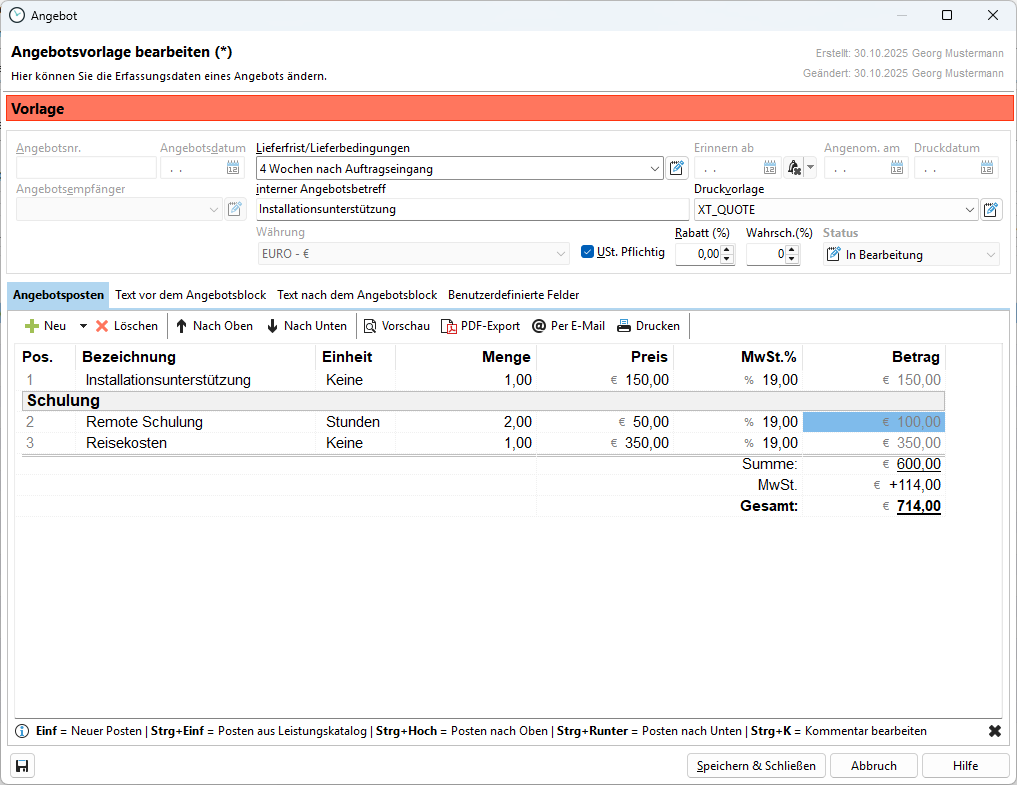 << Click to Display Table of Contents >> Navigation: Xpert-Timer Handbuch > Faktura > Angebote > Angebotsvorlagen |
