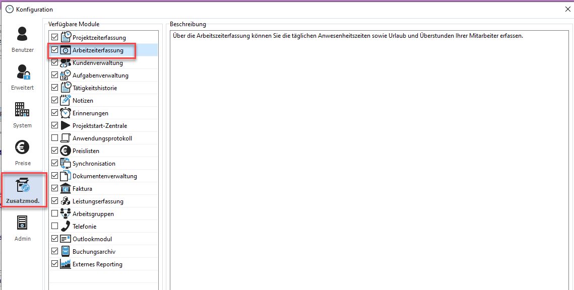 Prüfen Sie im nächsten Schritt, ob das Zusatzmodul in der Konfiguration -> Zusatzmodule aktiviert ist.