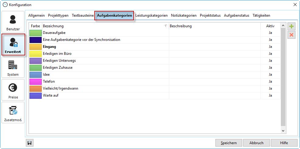 Die Aufgabenkategorien bieten Ihnen die Möglichkeit Ihre Aufgaben in der Aufgabenliste zu kategorisieren. Die ist sowohl in der persönlichen als auch in der integrierten Aufgabenliste möglich.