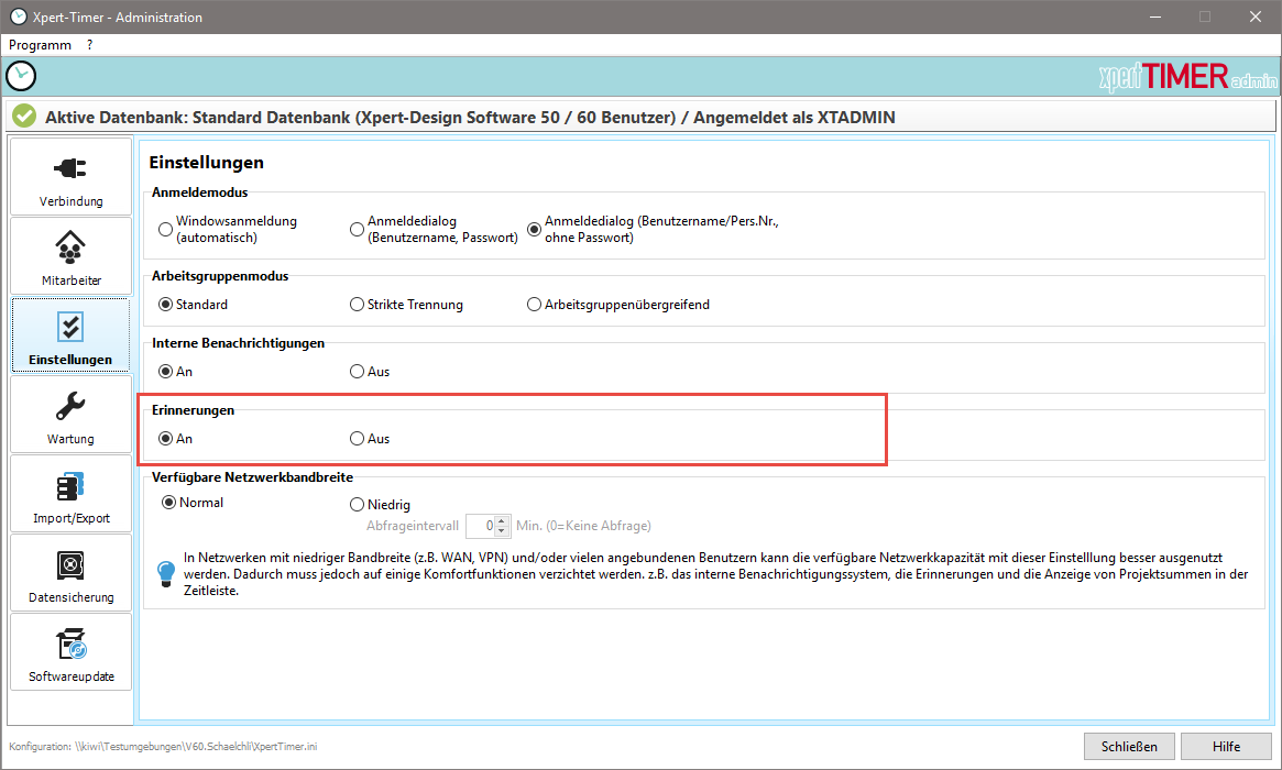 Erinnerungen sind kleine Nachrichten die nicht in Ihrer Datenbank gespeichert werden. Sie dienen dazu, Sie einfach nur an Kleinigkeiten zu erinnern. Sie können diese Erinnerungen hier zentral für das komplette System abschalten.