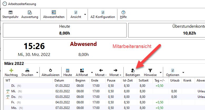 - Mitarbeiter muss seine Zeiten bestätigen