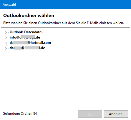 In diesem Dialog können Sie jetzt über den "Outlook" Knopf einen bestimmten Outlook Ordner auswählen.