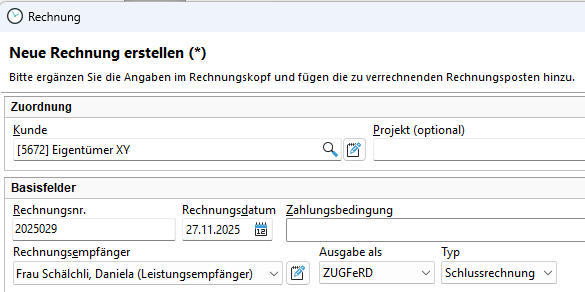 << Click to Display Table of Contents >> Navigation: Xpert-Timer Handbuch > Faktura > Rechnungen > Rechnung anlegen / bearbeiten > Rechnung |