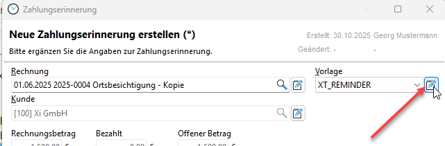 Es öffnet sich ein Dialog, in dem Sie bitte alle nötigen Daten zur Zahlungserinnerung eingeben. Über die Vorschau können Sie sich die Zahlungserinnerung ansehen und die Zahlungserinnerung als PDF speichern.