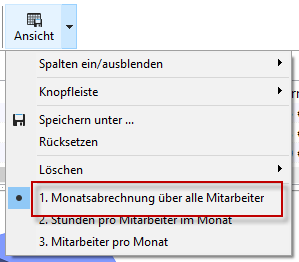Über den Knopf Ansichten können Sie die von Ihnen gewünschte Anordnung der Spalten sowie die gewählten Filter- und Gruppierungseinstellungen abspeichern. So können Sie auf einfache Weise mehrere Listenansichten verwalten und auf Knopfdruck wieder abrufen. |