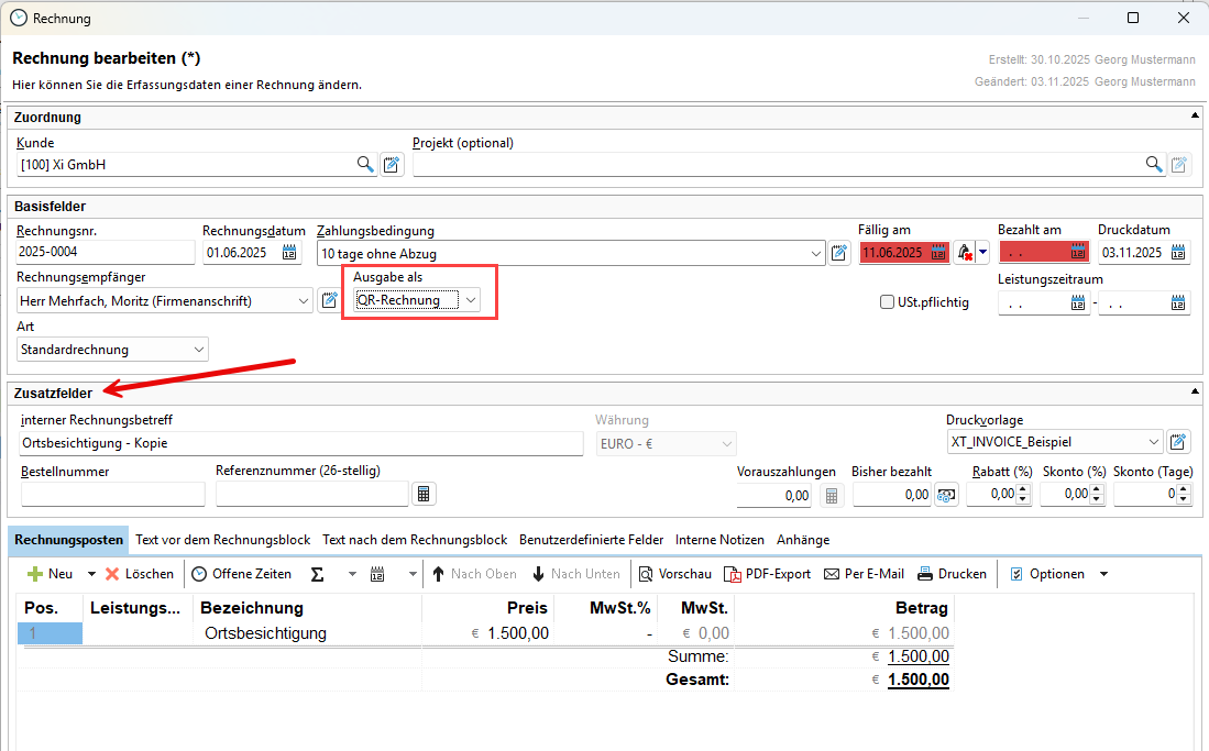 << Click to Display Table of Contents >> Navigation: Xpert-Timer Handbuch > Faktura > Rechnungen > Schweizer QR-Rechnung erzeugen |