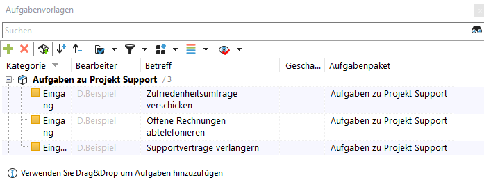 Über Aufgabenpakete können Sie immer wieder auftretende Aufgaben zu einem Paket schnüren und bestimmten Projekten per Drag&Drop zuweisen. |