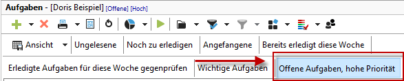 In der persönlichen Aufgabenliste als auch im Aufgabenbereich haben Sie viele Möglichkeiten Ihre Aufgaben anzuzeigen. Dazu steht Ihnen ein Menü zur Gruppierung, Kategorisierung und zum Filtern von Daten zur Verfügung.