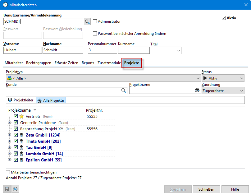 << Click to Display Table of Contents >> Navigation: Xpert-Timer Handbuch > Mitarbeiterverwaltung > Mitarbeiterdaten > Projekte |