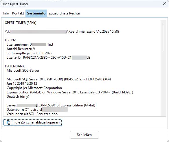 4.Im ersten Schritt müssen Sie die Verbindung zwischen dem XTSyncServer Service und der Xpert-Timer Datenbank herstellen. Den Pfad zu Ihrer aktuellen Datenbank finden Sie in Ihrem Xpert-Timer Pro im Projektmanager -> Menüpunkt "Hilfe" -> "Info über Xpert-Timer" -> "Systeminfo".