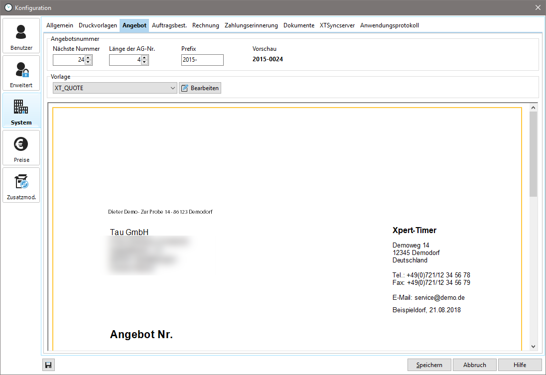 Speichern Sie die Vorlage als XT_QUOTE_* ab, damit Sie in Ihren Angebotsvorlagen auftaucht.