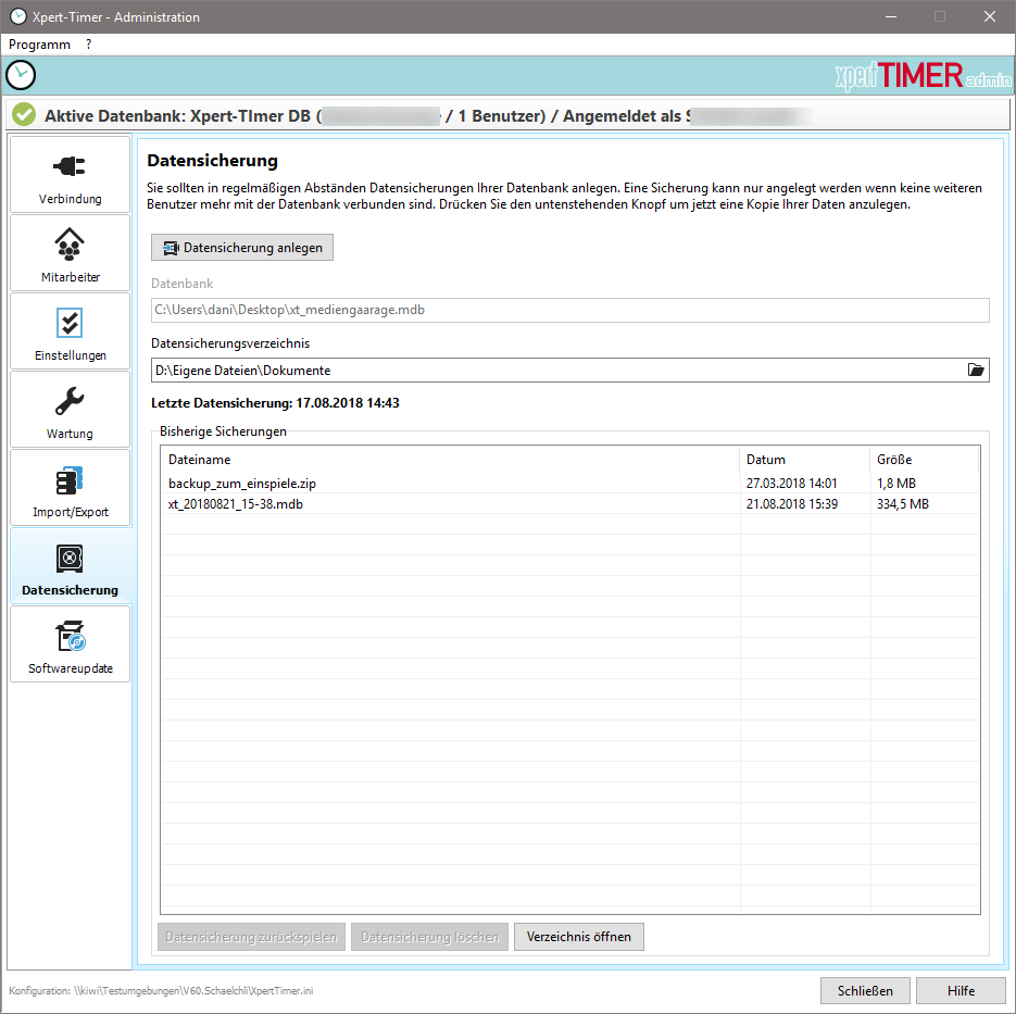 Der Xpert-Timer erstellt für Sie standardmäßig automatisch tägliche Backups Ihrer Datenbank, solange Sie diese Einstellung in der Konfiguration nicht ändern.