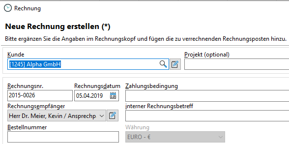<< Click to Display Table of Contents >> Navigation: Xpert-Timer Handbuch > Faktura > Rechnungen > Rechnung anlegen / bearbeiten > Rechnung |