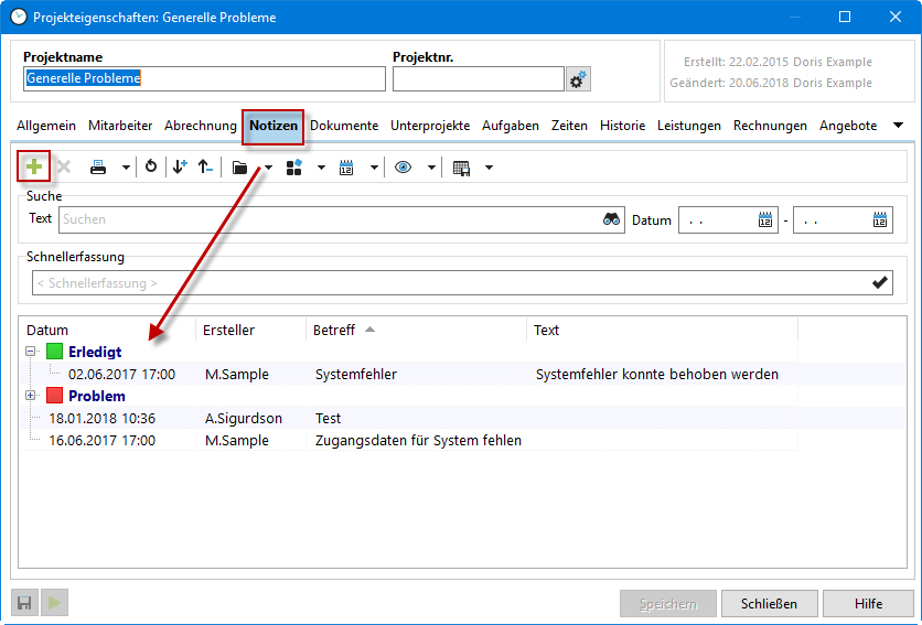 Sie können im Reiter "Notizen" zu Ihrem Projekt Notizen hinterlegen. Das können z.B. Zugangsdaten sein, Hinweise zum Projekt, noch offene Fragen, Notizen, die bei einer Projektbesprechung gemacht wurden usw. Lassen Sie Ihren Ideen freien Lauf.