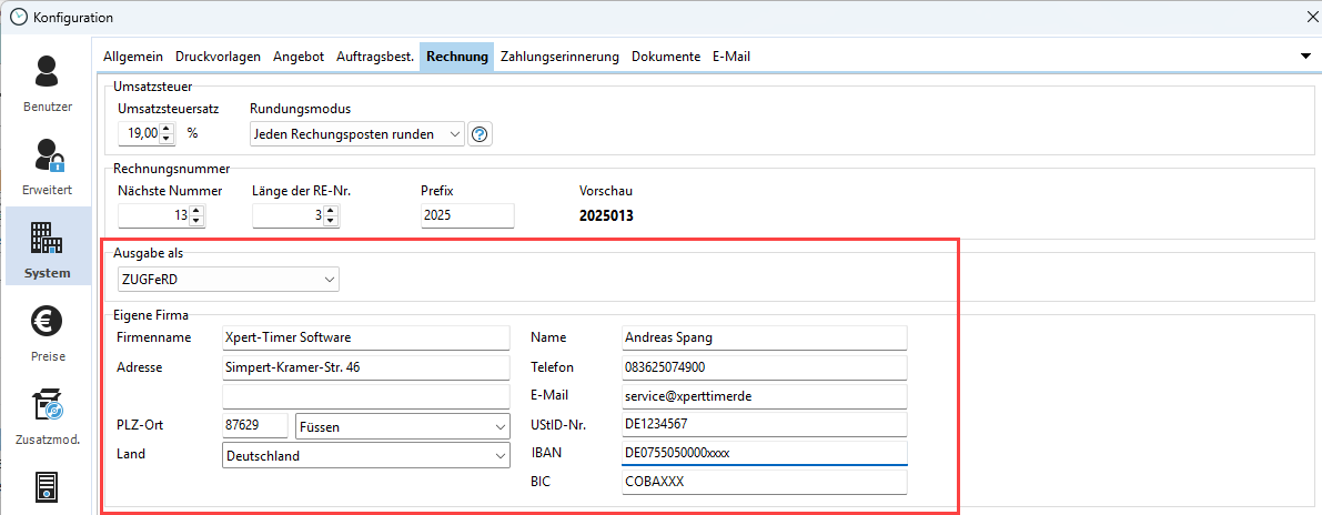 Haben Sie in der Konfiguration -> System -> Rechnung Ihre Firmendaten hinterlegt und die Option "QR-Rechnung verwenden" aktiviert, können Sie über die Fakture Ihre Swiss-QR-Rechnungen erzeugen.